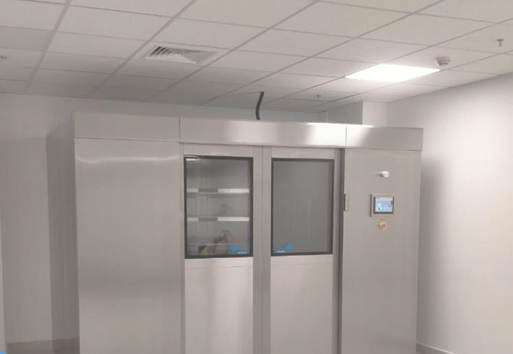 工作原理介紹:檔案消毒除塵室采用全不銹鋼材質制作,進門為自動感應雙側是移門,人員觸碰按鈕后開門,將托盤送入到除塵室內,人員退出后關閉自動門,當門關閉后,除塵室內啟動風淋除塵,此時自動門鎖閉,工作報警指示燈顯示為紅色狀態(tài),門無法打開。當除塵時間到達后,報警指示燈顯示為綠色并發(fā)出報警聲音,門為可開狀態(tài)。人員取出托盤,將之送入到庫房內進行保存。