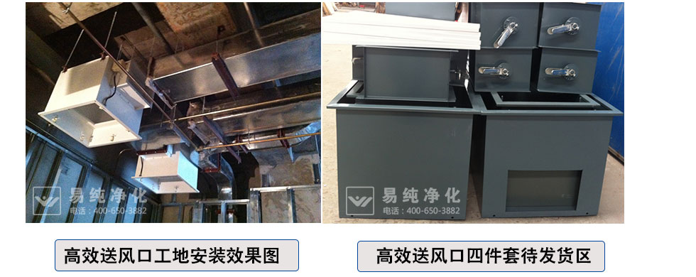 高效送風(fēng)口為千級、萬級、十萬級凈化空調(diào)系統(tǒng)較為理想的終端過濾裝置,可廣泛于醫(yī)藥、衛(wèi)生、電子、化工等行業(yè)的凈化空調(diào)系統(tǒng)。高效送風(fēng)口是用作改造和新建1000-300000級各級潔凈室的終端過濾裝置,是滿足凈化要求的關(guān)鍵設(shè)備。高效送風(fēng)口包含靜壓箱,散流板,高效過濾器,與風(fēng)管的接口可為頂接或側(cè)接