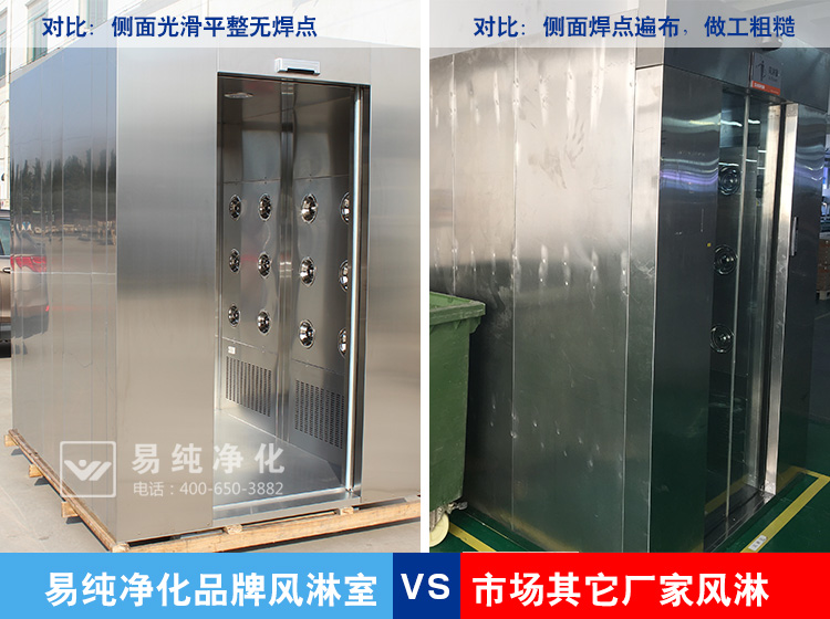 1、風淋室的材質:首先從材質上分類主有彩鋼板,鋼板型風淋室和不銹鋼風淋室三種主流材質。其中彩鋼板因質量較差目前已經基本不再使用,鋼板風淋室主要看材質的厚度和噴漆的過程,市場上有的采用0.8-1.0的材質厚度,這種厚度偏薄,容易變形。一般建議在1.2MM或以上的鋼板材質較佳。在噴塑上面,很多廠家都是自噴或者是到小廠家噴塑。這其中有一個最重要的環(huán)節(jié)就是需要酸洗磷化,很多廠家為了節(jié)約成本或者噴塑廠家實力不行,未經過酸洗磷化,如果缺少這個步驟,油漆本身很難與設備粘合,時間一長,很容易整場的脫漆。