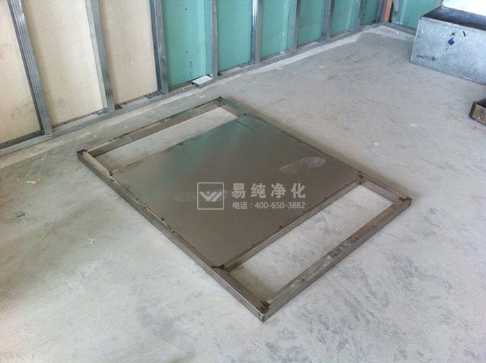 (一)風淋底盤一般由不銹鋼方管制作,厚度為40MM,底盤為整體組成,首先將風淋底盤置于風淋安裝位置處。風淋底盤不需要與地面進行固定,完全靠自身重量即可保持穩固。一般單人風淋室為350KG,雙人風淋室為650KG左右。