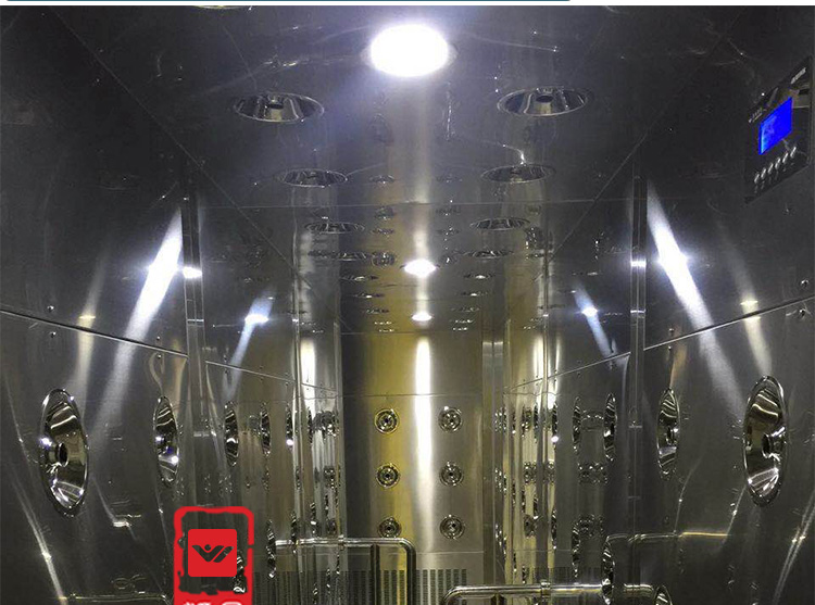 定義:為了減少由于人員進出所帶來的大量塵埃粒子,經(jīng)高效過濾器過濾后的潔凈氣流由可旋轉噴嘴從各個方向噴射至人身上,有效而迅速清除塵埃粒子,清除后的塵埃粒子再由初、高效過濾器過濾后重新循環(huán)到風淋區(qū)域內。