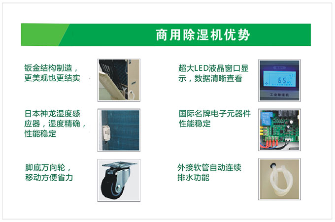 商用除濕機在家庭得應(yīng)用可以有效的控制濕度,防止物品受潮,風干衣物,防止各種因潮濕而引起的各種疾病的流行,除濕機,讓您擁有陽光般的感覺!