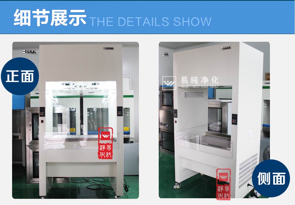 上部吹風(fēng):上部有風(fēng)機(jī)和初高效過濾器,風(fēng)機(jī)經(jīng)過加壓將過濾后的潔凈空氣送入到工作區(qū)內(nèi),使工作區(qū)的環(huán)境達(dá)到百級(jí);